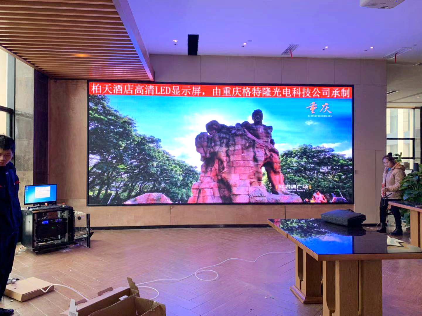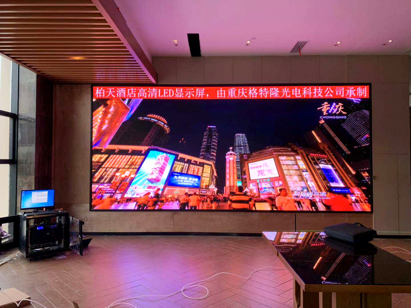 【項目名稱】永川柏天酒店 【安裝地點】重慶永川 【適用范圍】室內(nèi)全彩LED顯示屏 【屏體面積】14.8平米 【產(chǎn)品型號】室內(nèi)p3 【產(chǎn)品特點】 適用于近距離觀看,耐用、高度清晰、質(zhì)量穩(wěn)定、壽命長,大視角、高清、高亮、高對比度,顯示功能靈活多變,適用于文字、圖形和多媒體節(jié)目的播放,可以實時播放、同步、清晰的播放各種信息。